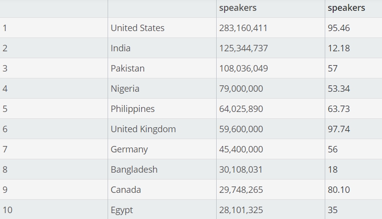 引用:What are the Top 10 English Speaking Countries?/Maps of World