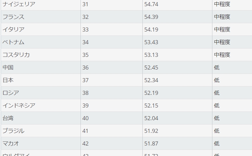 アジアの国の中ではランキングも高く、かなりの高評価になっています。