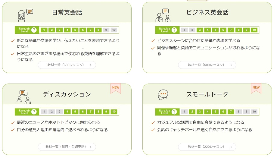 実用英会話はレアジョブレベル別に3~8に分かれており、